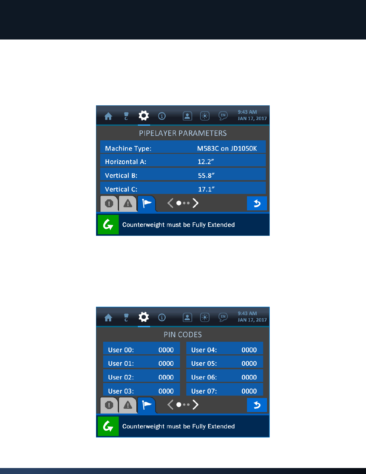 all times while the pipelayer is in operation. If the voltage drops below 10.5 VDC the