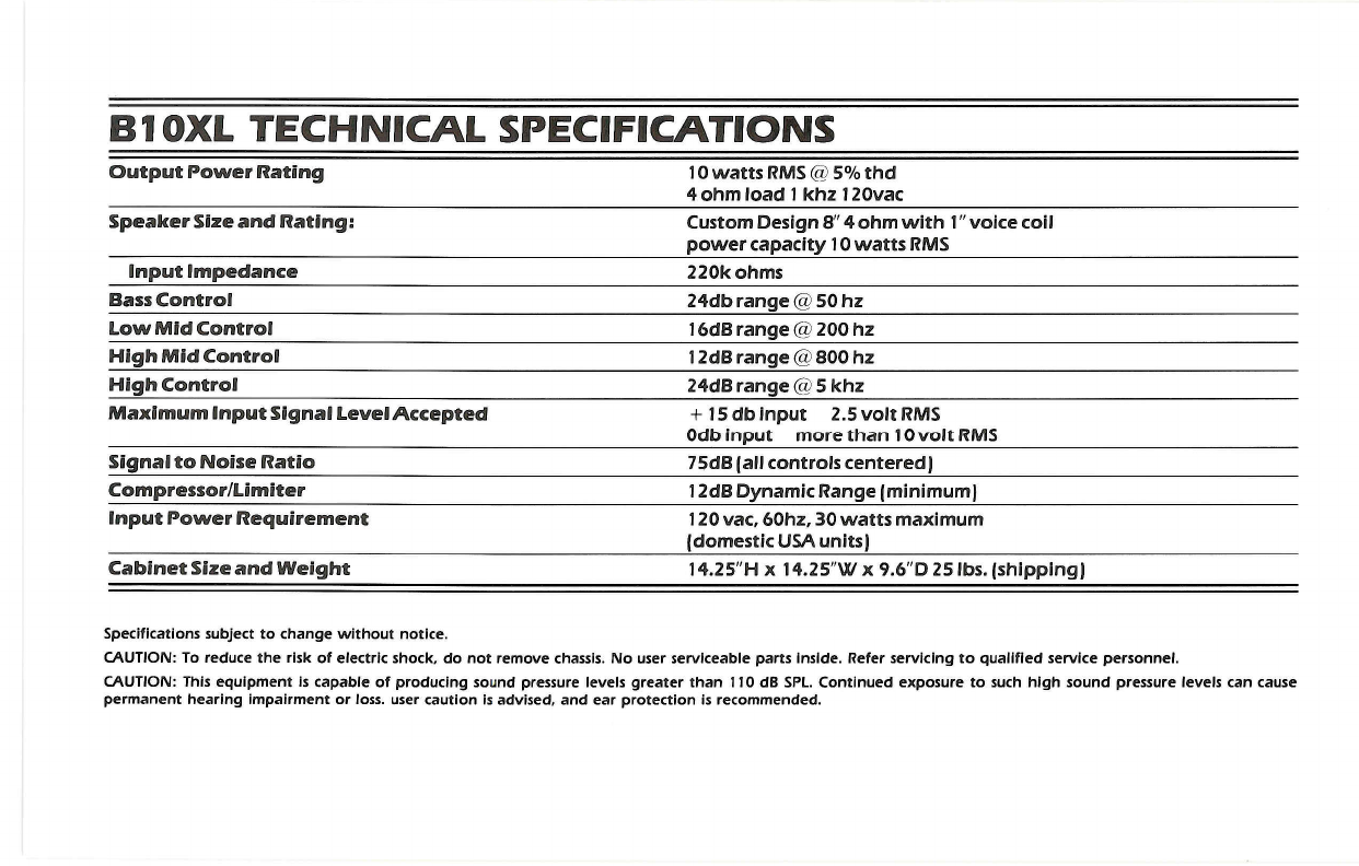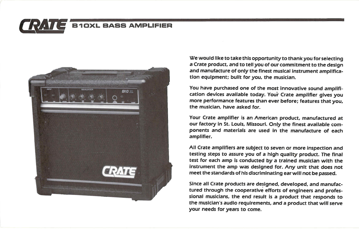 Crate Amplifiers B10 Xl Users Manual