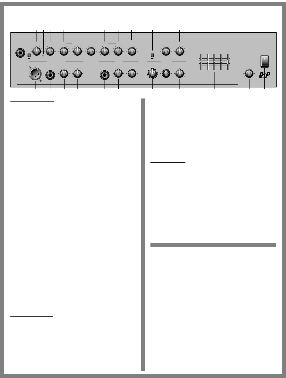 reverb and effects return controls, a five-band