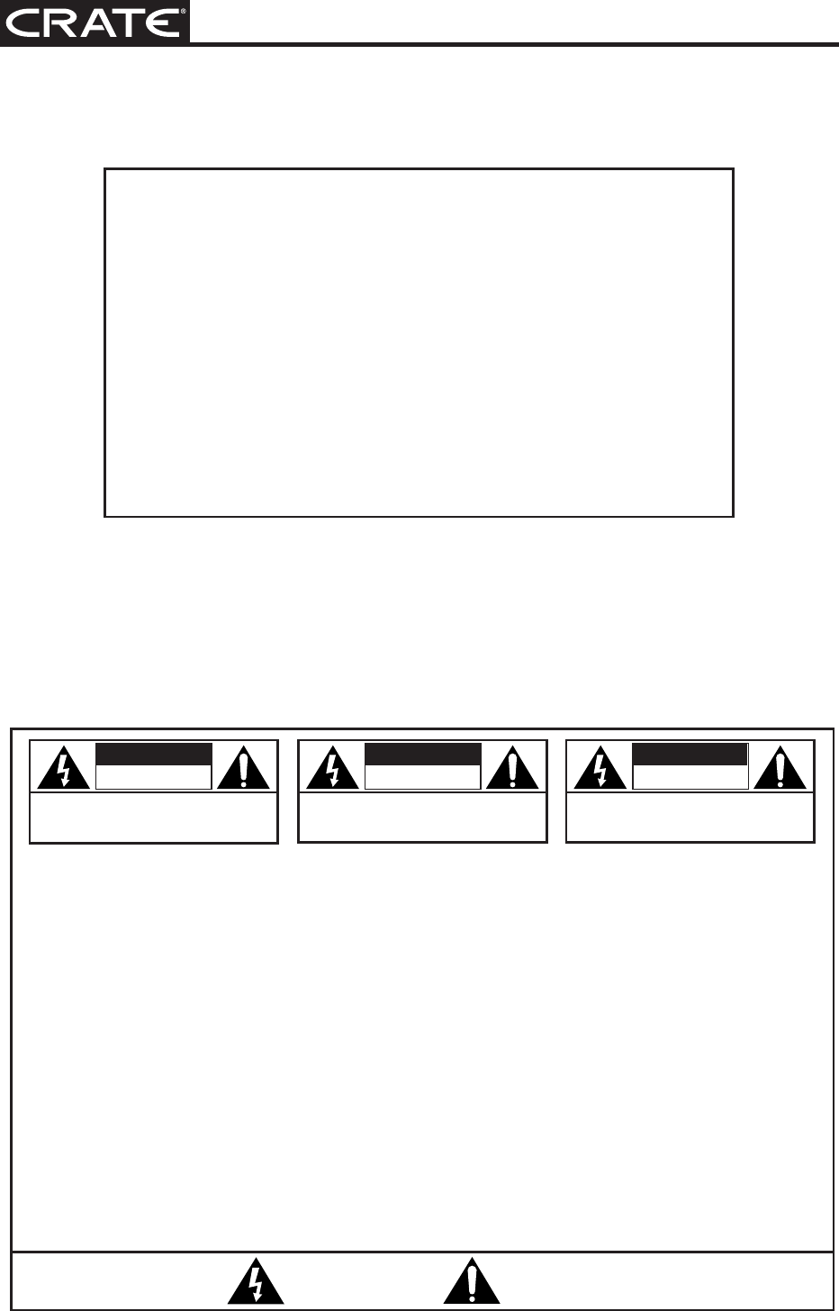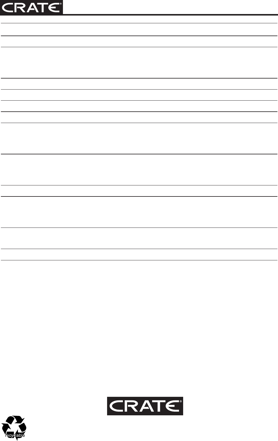 “Crate” is a registered trademark of LOUD Technologies Inc. All other brand names mentioned are trademarks or