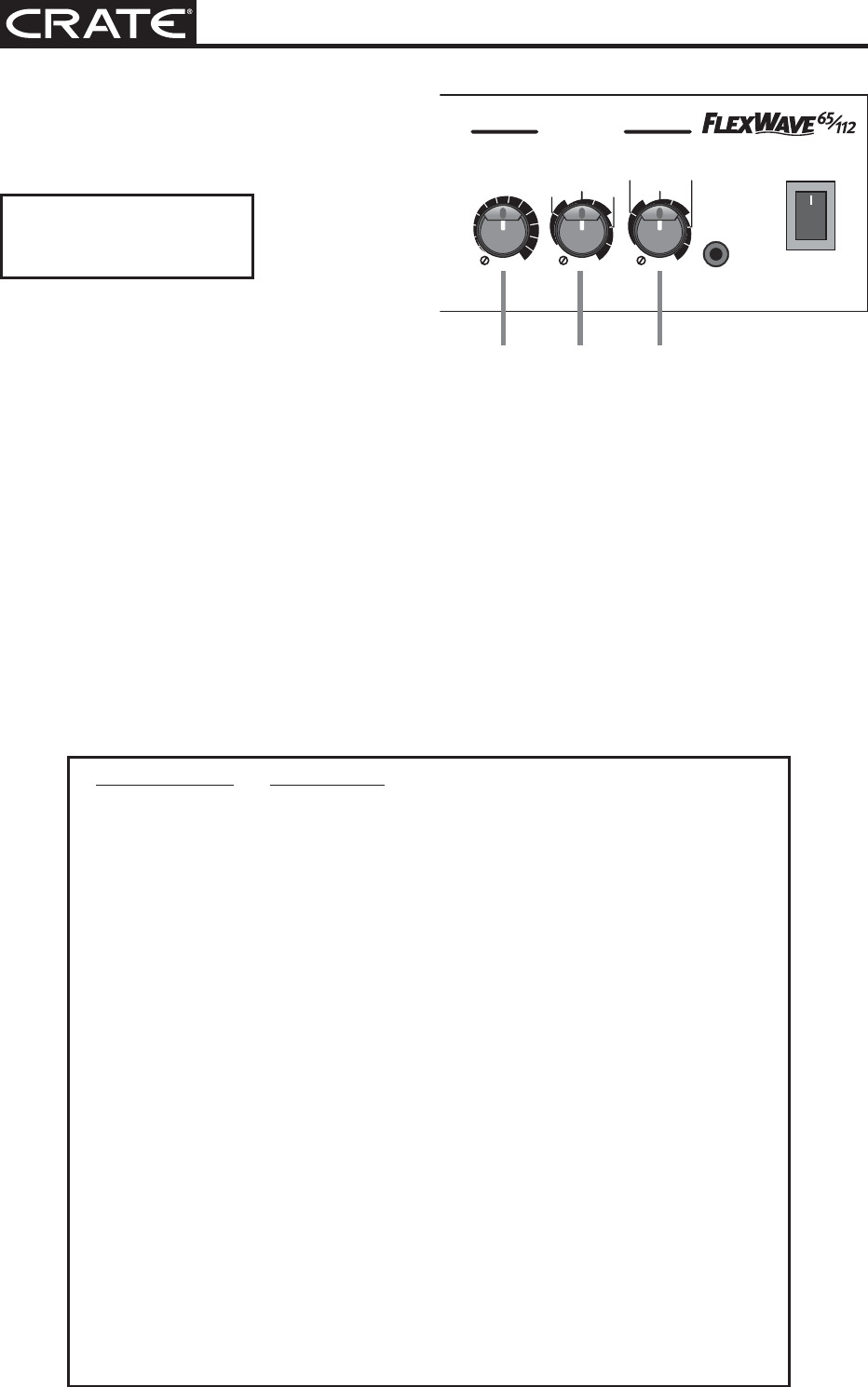 Crate Amplifiers Flexwave 65 112 Users Manual 65/112 Three Channel Guitar Amplifier Owner's