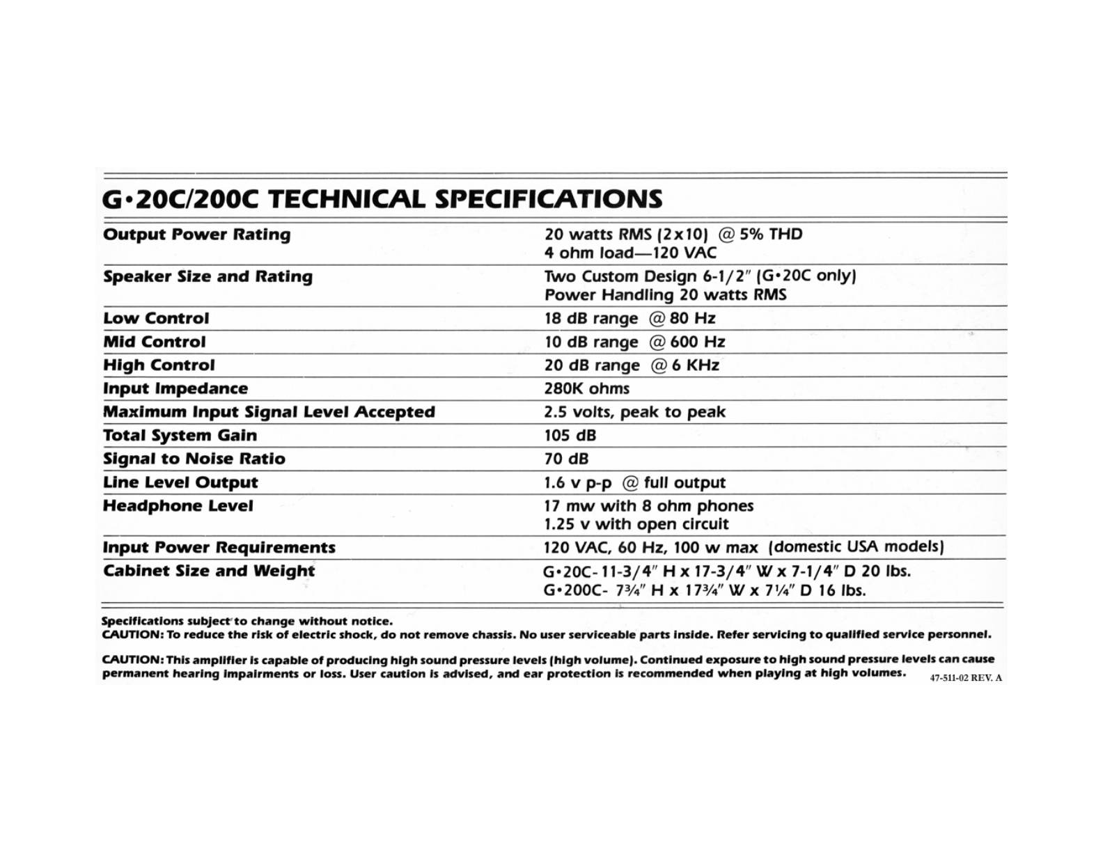 Crate Amplifiers G200C Users Manual
