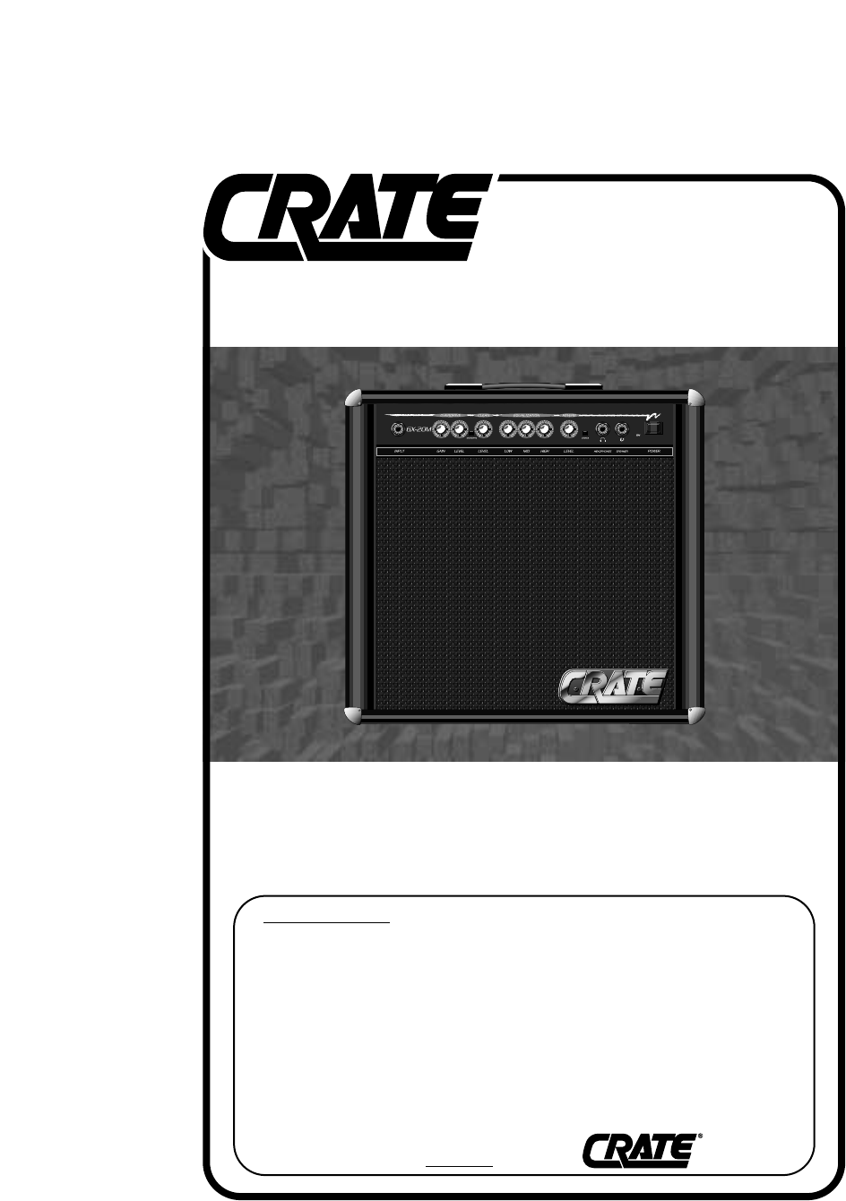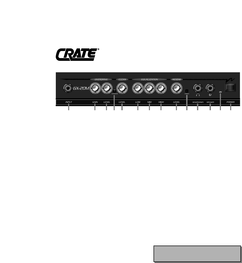 Like all Crate products, your GX-20M/R is Musician Made in the U.S.A., using