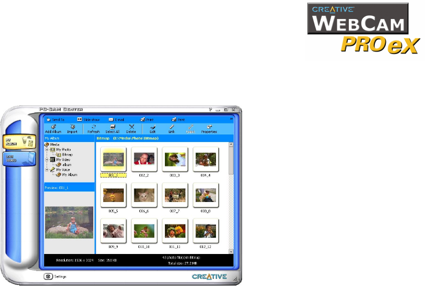 Creative WebCam Pro eX is supplied with the following software: