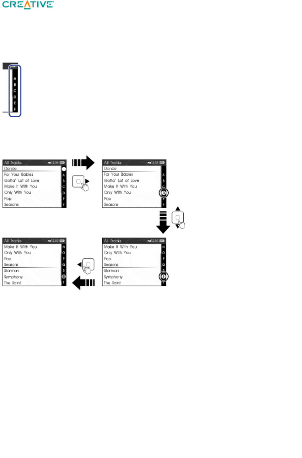 When you have a long list of items, the alphabet bar helps you to move quickly from one part of the list to