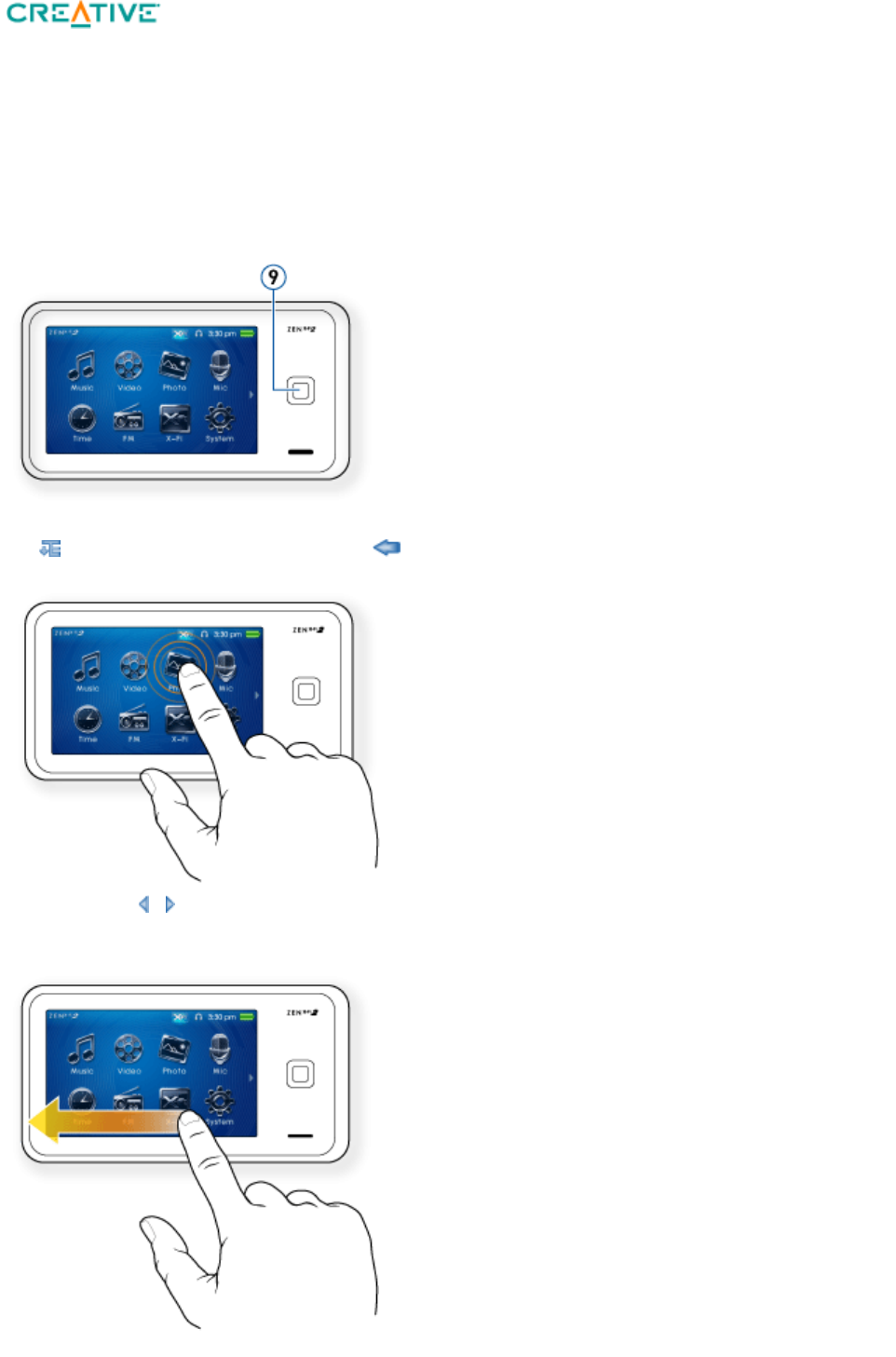 With the use of the touch screen, you can access almost all the features and functions of your player. In
