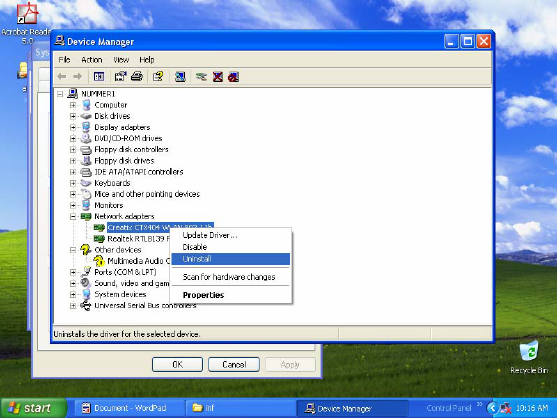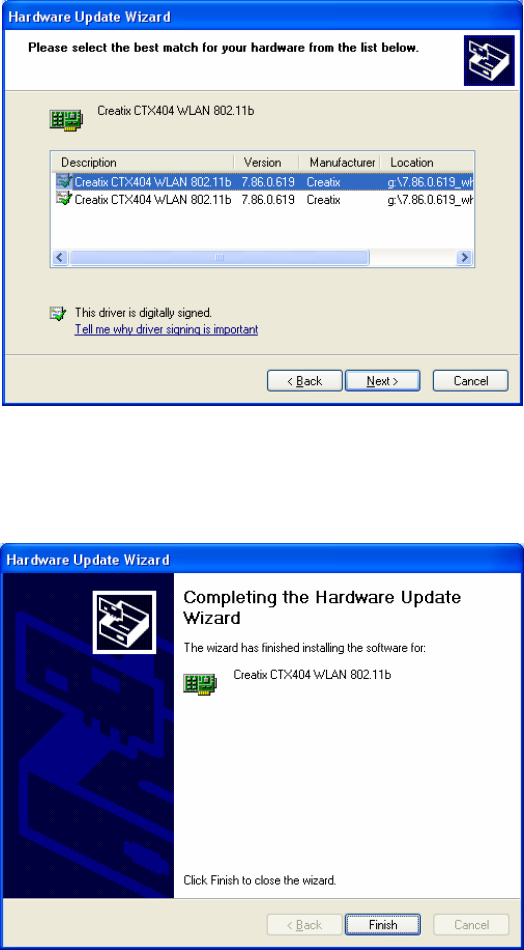 Click with the right mouse button to the Creatix CTX404WLAN 802.11b and