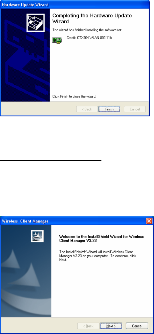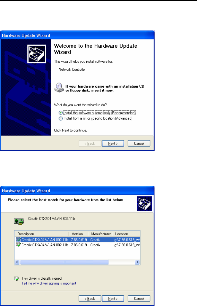 After starting the PC the Wireless LAN card is found as a New Hardware “Network
