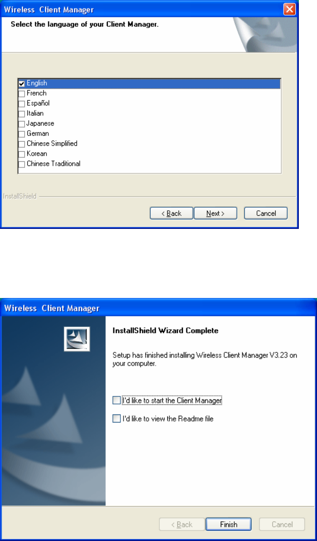Select the language of your Client Manager and Click “Next”>.