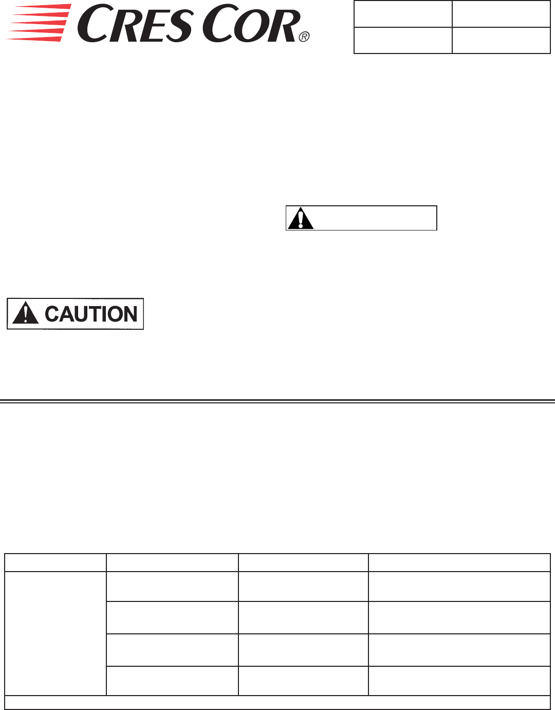 Call Toll-free: 877-CRES COR (273-7267) • Fax: 800-822-0393 • www.crescor.com