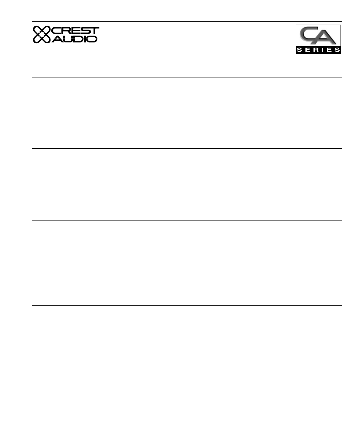 Appendix D Crest Audio CA Series Power Amplifiers