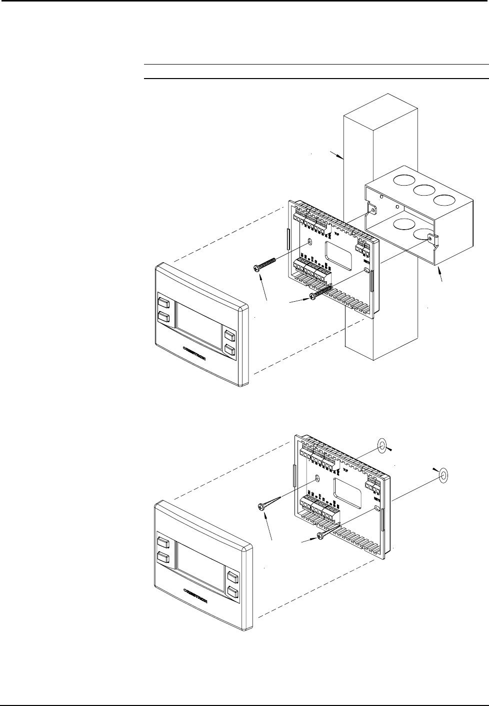3. Mount the thermostat backplate (60 inches above the finished floor) directly to the wall with wall anchors (not
