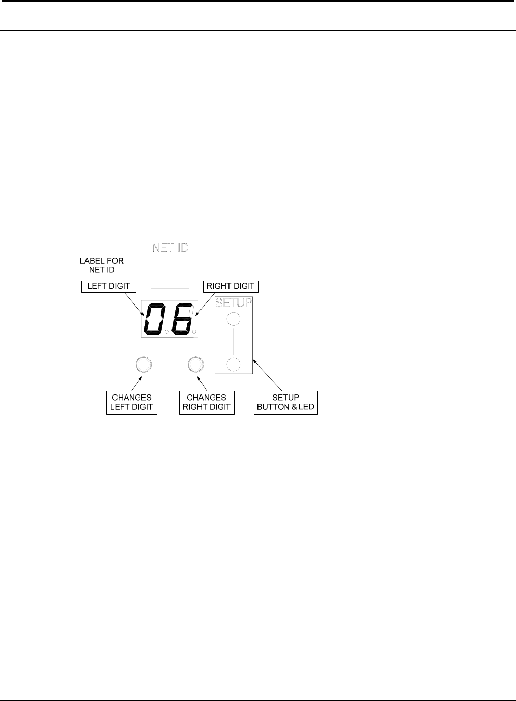 If the SETUP button is not pressed, the Setup mode will time out after one minute activity and the Net ID