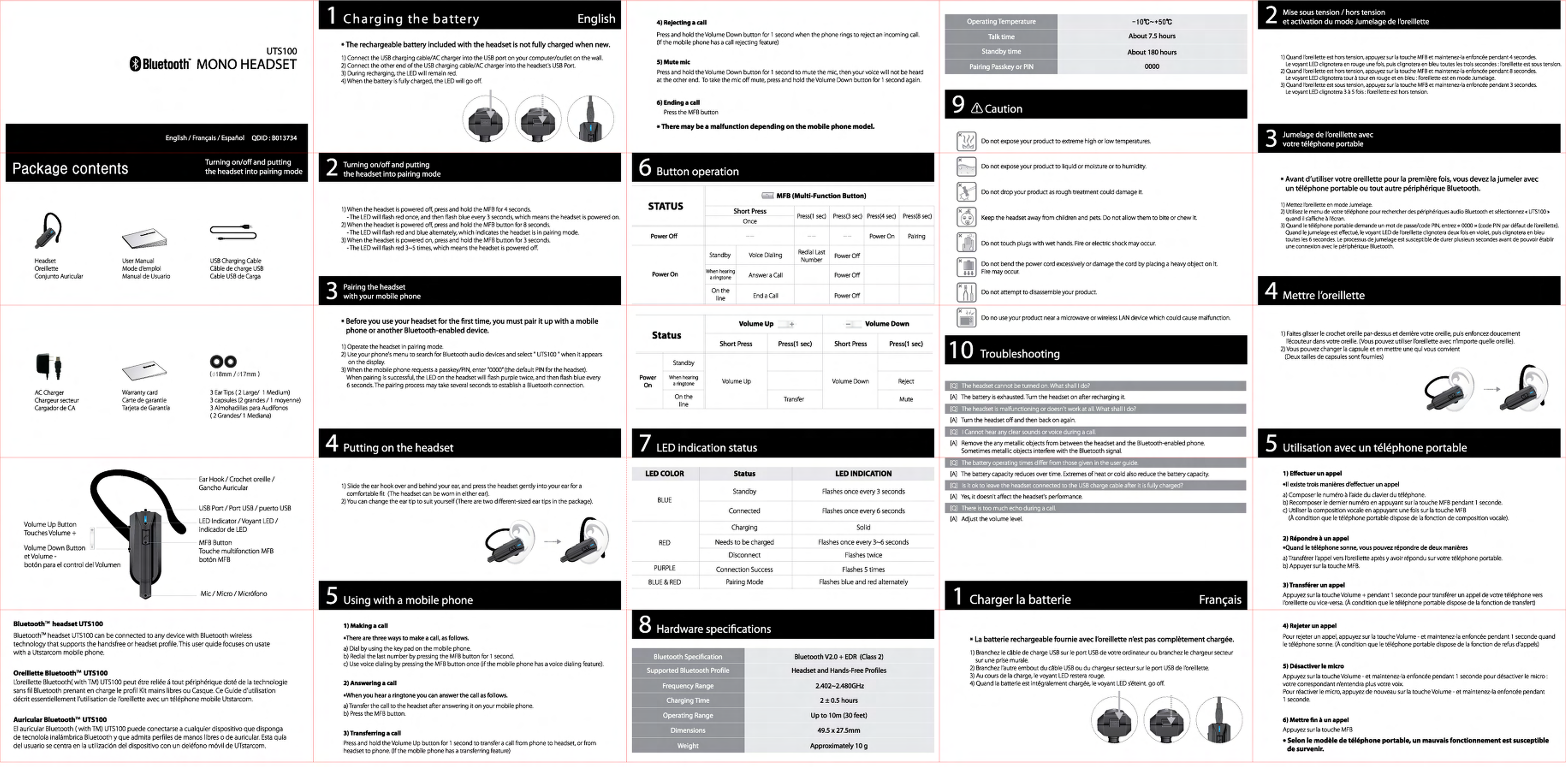 Cresyn UTS100 MONO HEADSET User Manual USERS MANUAL