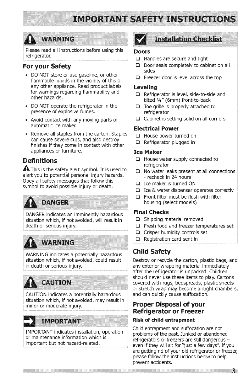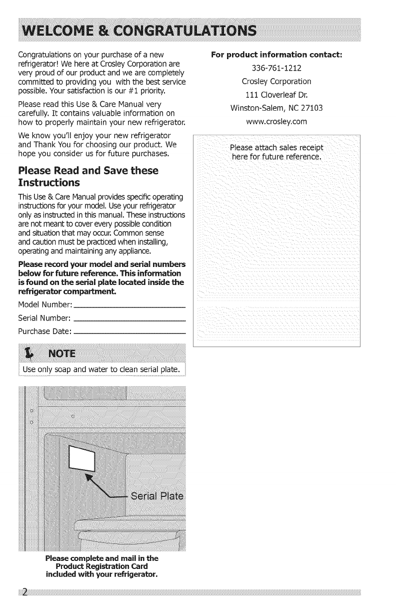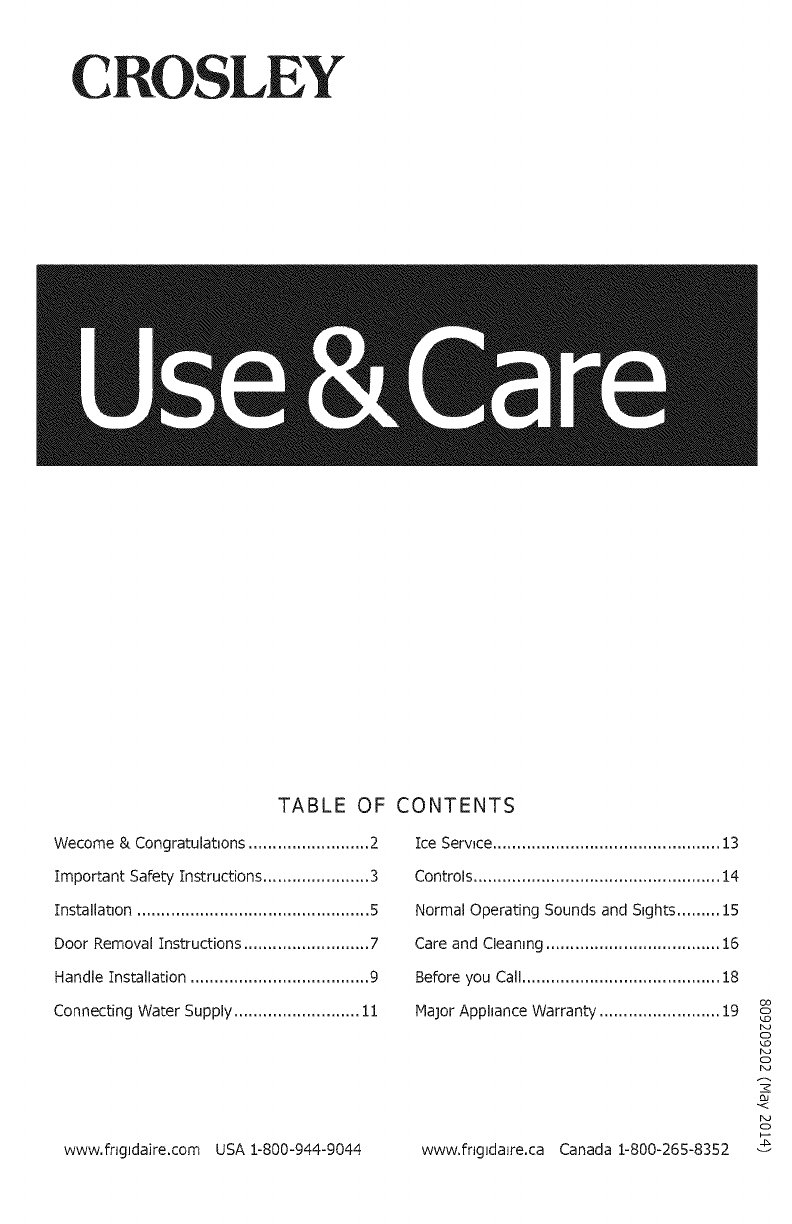 Crosley CRT151HQW0 User Manual REFRIGERATOR Manuals And Guides 1410330L