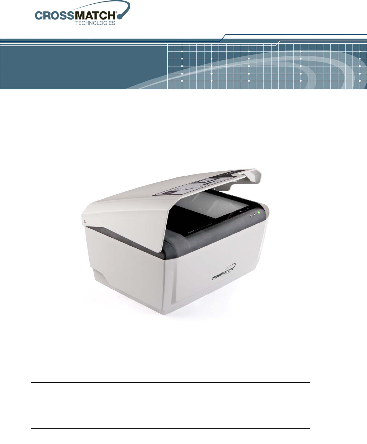 Cross Match Technologies RJ0479 OPTICAL SCANNER WITH RFID User Manual Users Guide