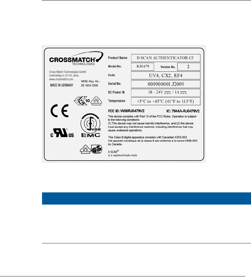 Cross Match Technologies GmbH D Scan Authenticator CF Users Manual
