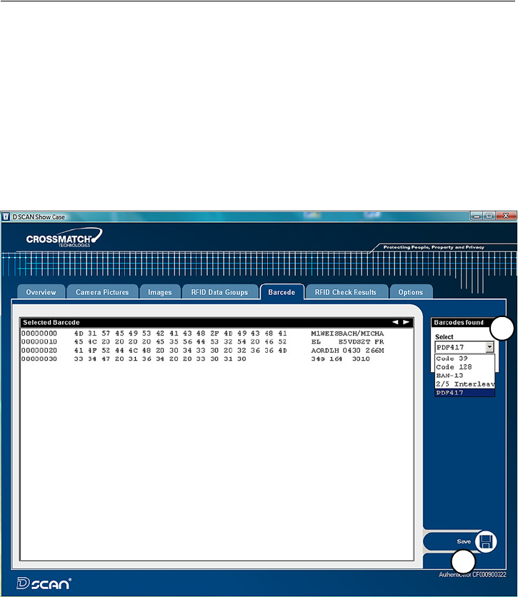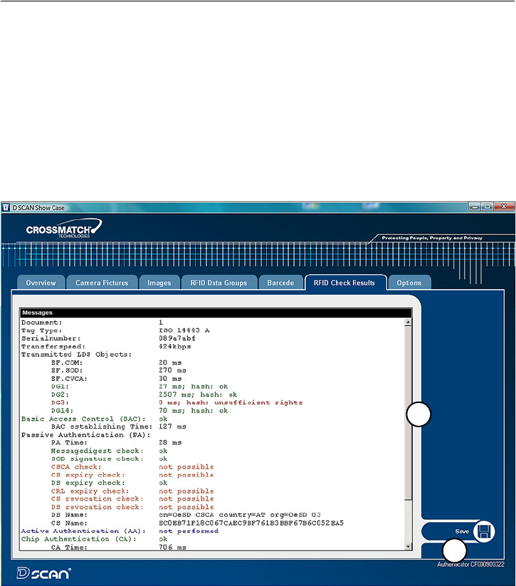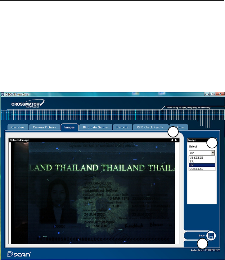 software belonging to the D SCAN AUTHENTICATOR CF receives the image