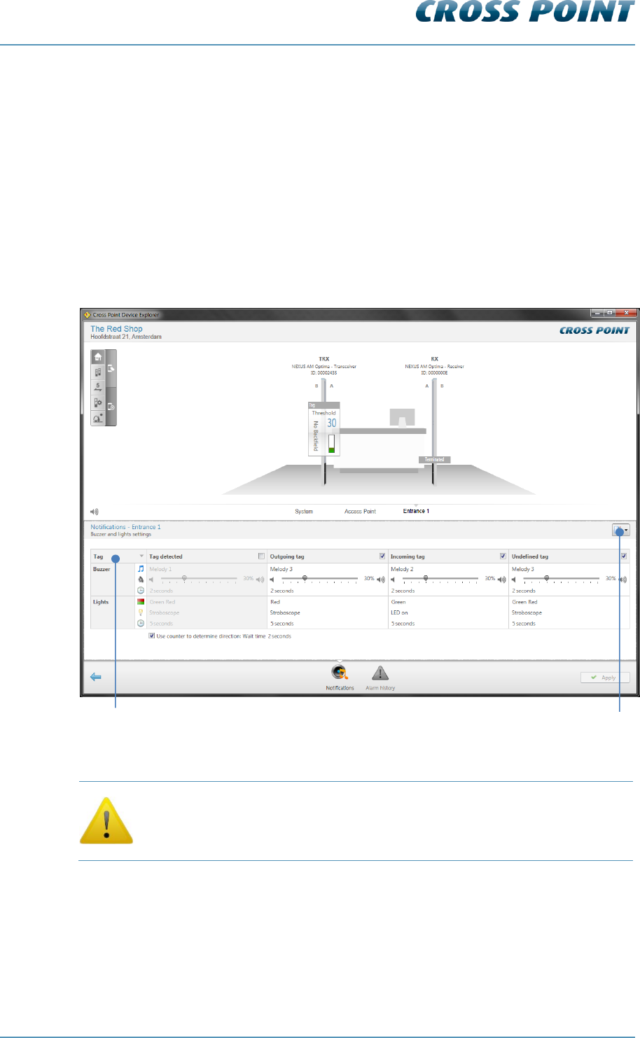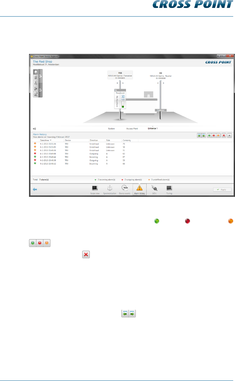 The system’s Alarm history screen shows a list of the tags that have been detected on