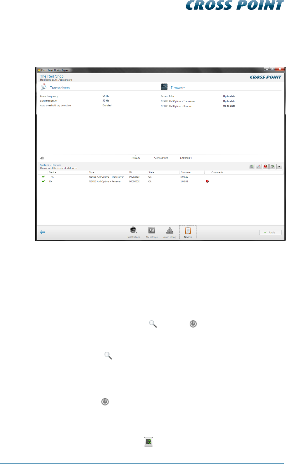 The Devices screen shows a list of all connected devices, their firmware status and some
