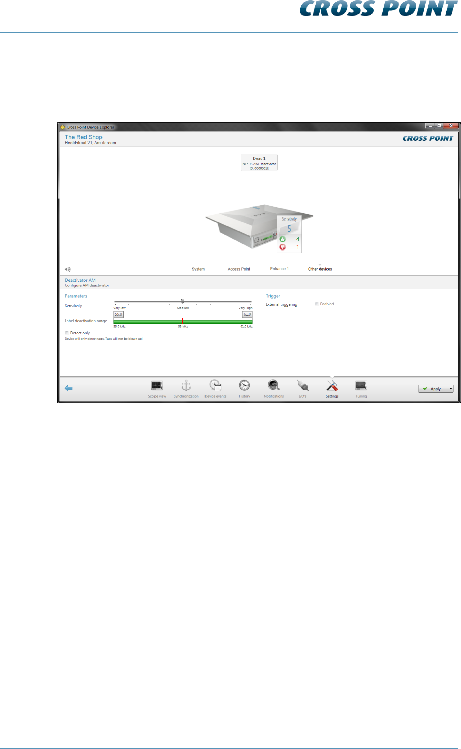deactivation range, for the NEXUS AM Deactivator and enables these settings to be