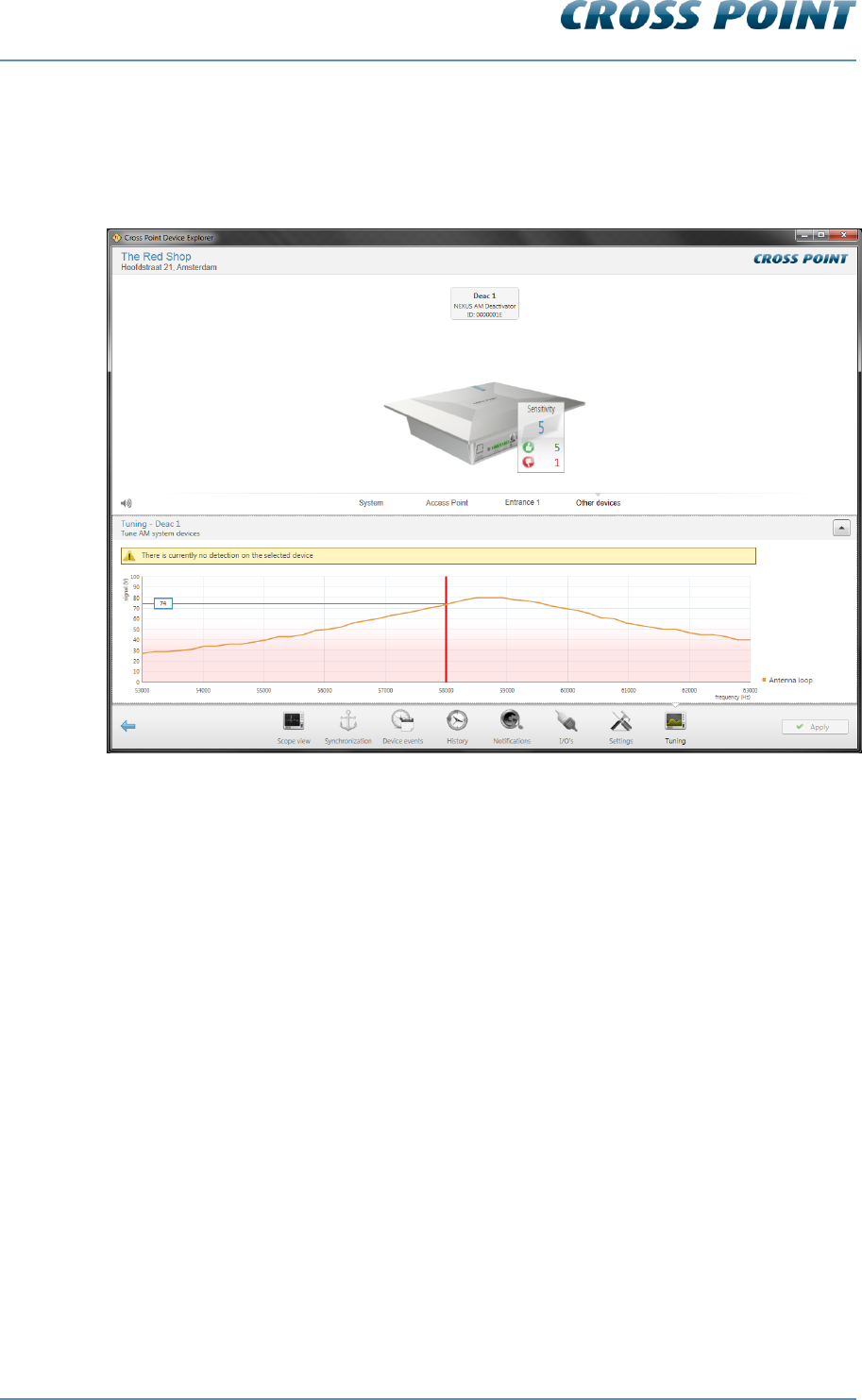 The tuning is fixed and cannot be changed. The graph only indicates the antenna voltage,