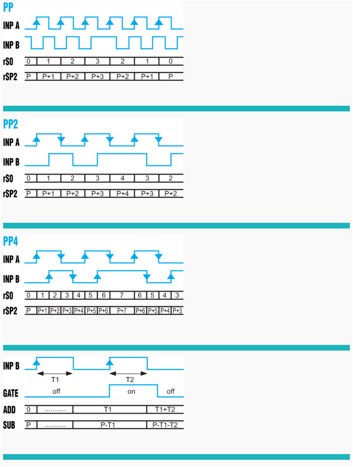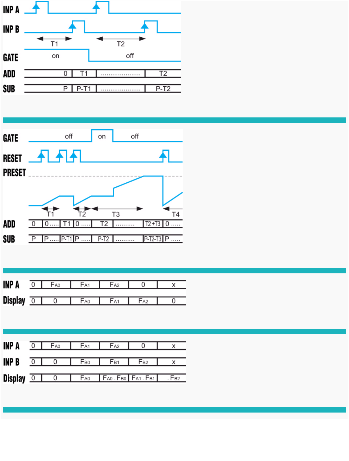 Inp A : No function Inp B : On/Off Individual time counting, automatic reset before each new countAdd:Display0→Preset