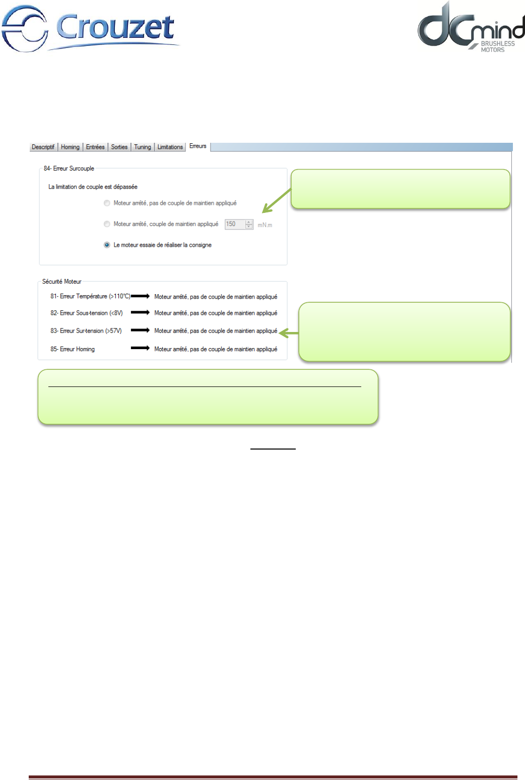 => Comparer la valeur avec le couple de maintien indiqué sur la fiche technique.