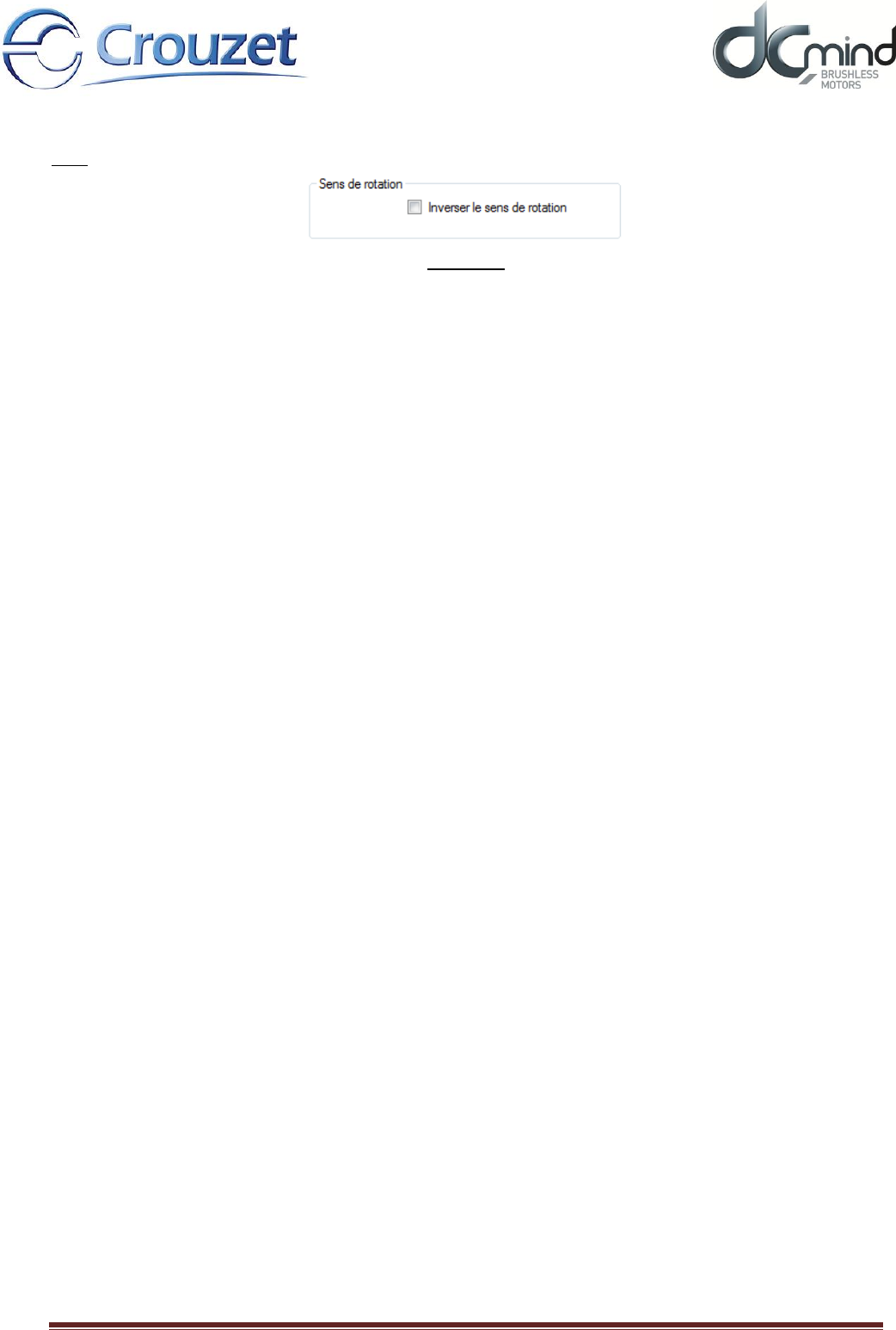 Sens de rotation positif ou négatif de l'arbre du moteur. Le sens de rotation positif est le sens de rotation de