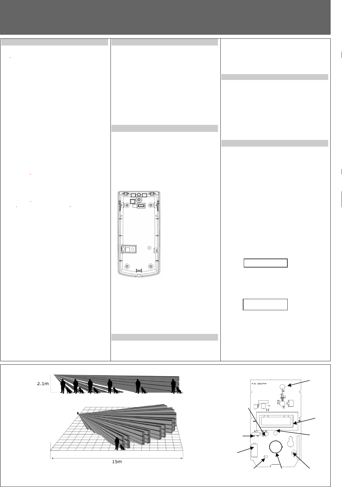 • Test mode for PIR coverage and RF signal.