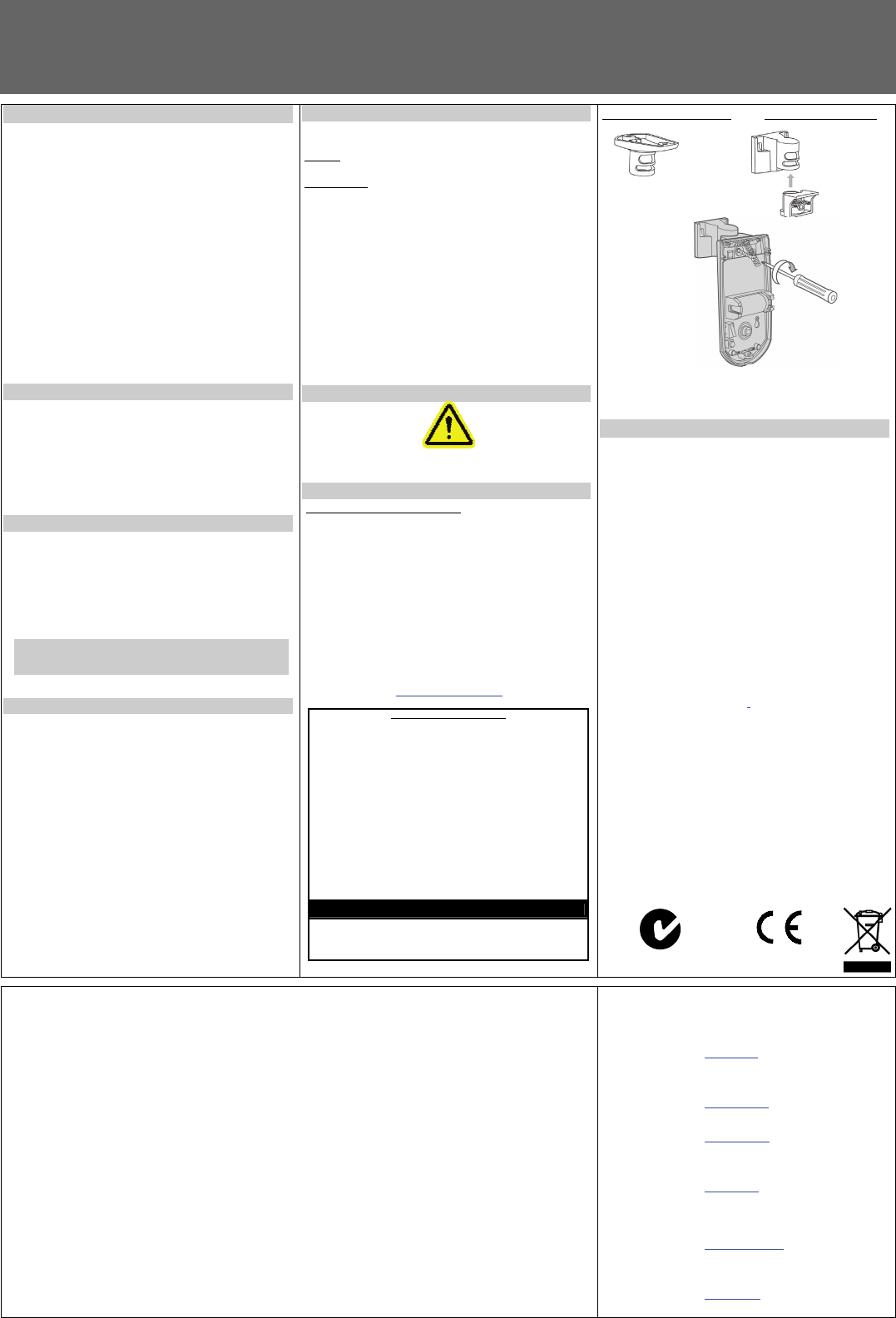Crow Electronic Engineering FW-NEO-9F WIRELESS PIR DETECTOR User Manual FW NEO 9F