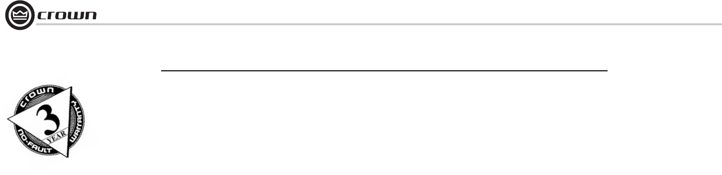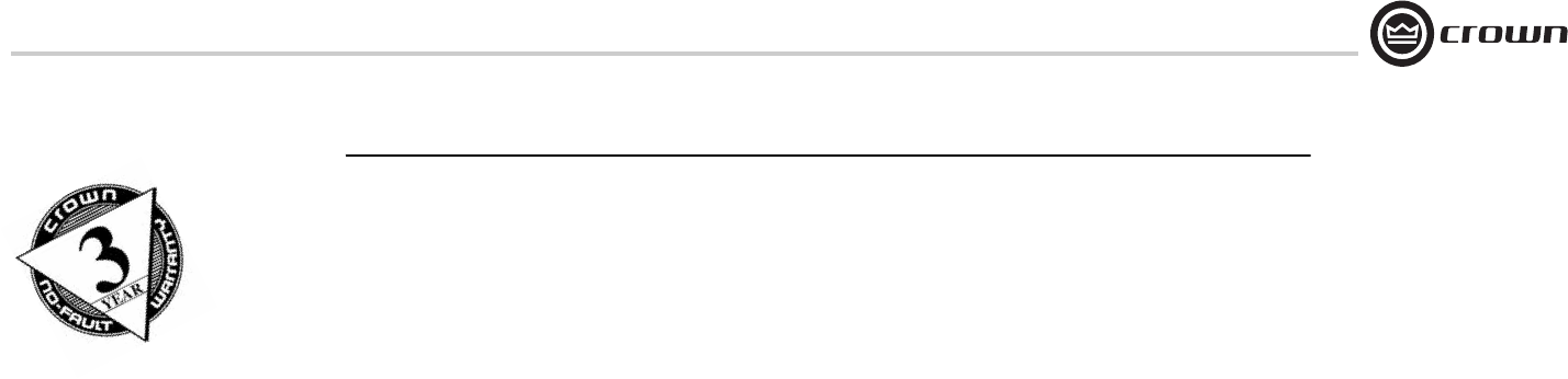 ©2007 by Crown Audio® Inc., 1718 W. Mishawaka Rd., Elkhart, Indiana 46517-9439 U.S.A. Telephone: 574-294-8200