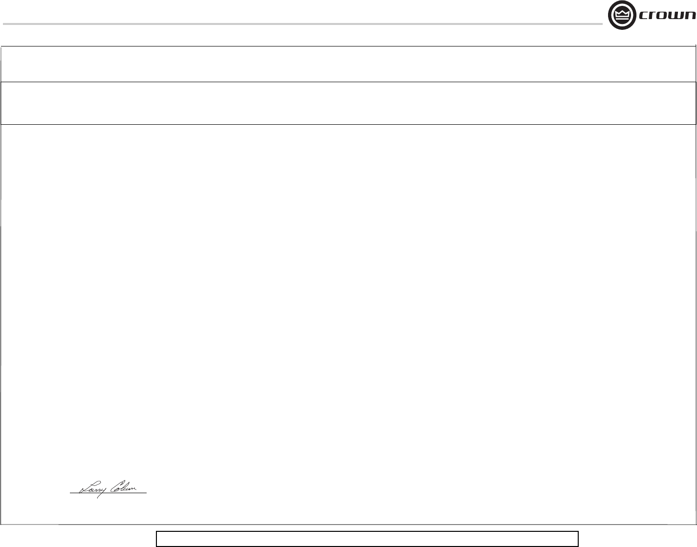 occurred. To obtain the latest version of this manual, please visit the Crown website at www.crownaudio.com.