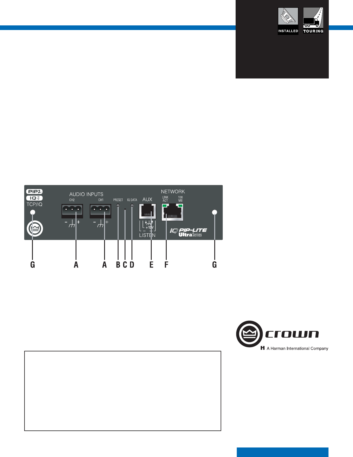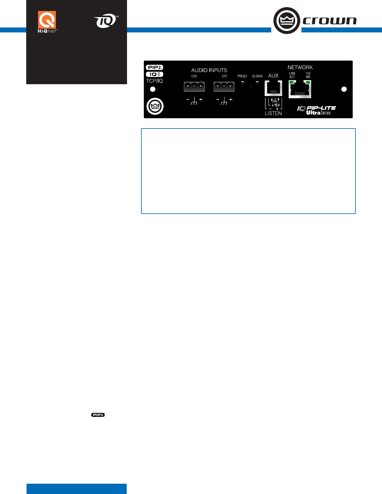 Crown Audio Iq Pip Lite Users Manual 135802 3C_7 05_iq Lite_datasheet