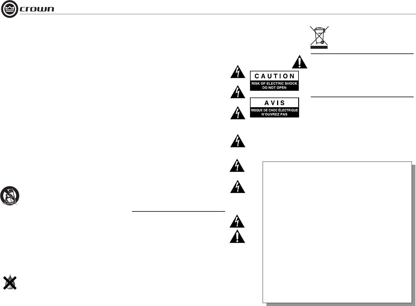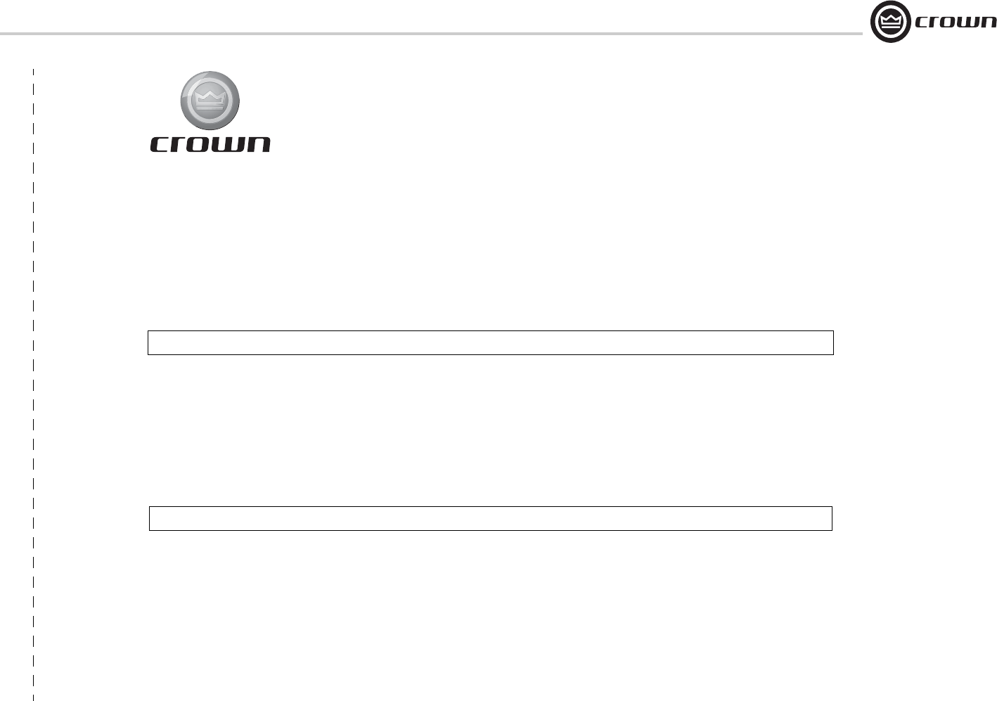 ©2007 by Crown Audio®, Inc. 1718 W. Mishawaka Rd., Elkhart, Indiana 46517-9439 U.S.A. Telephone: 574-294-8000