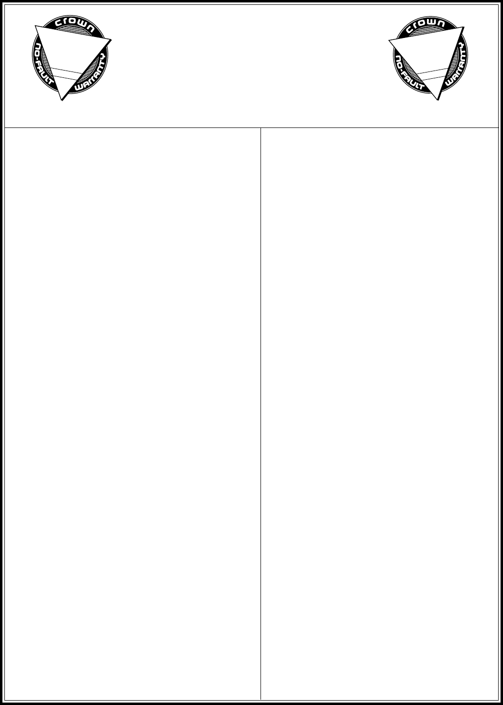 Visit www.crownaudio.com for a list of Crown authorized service centers.