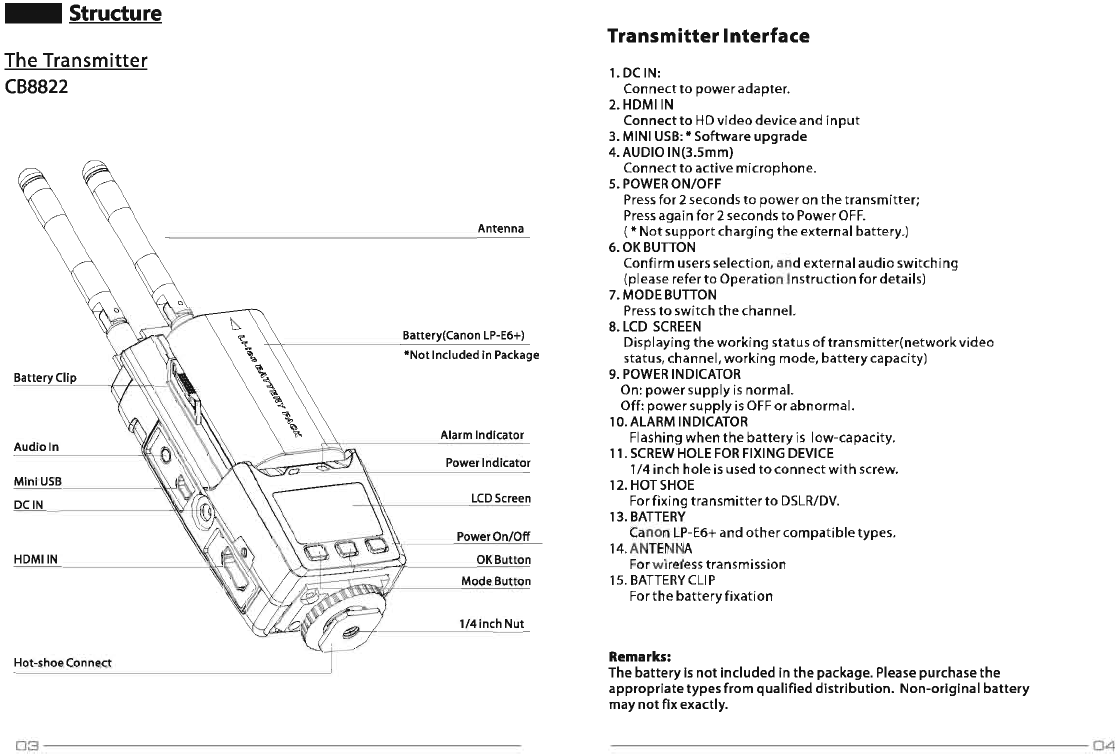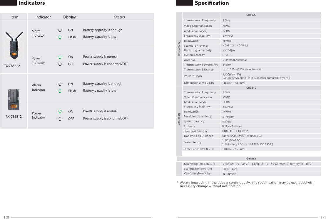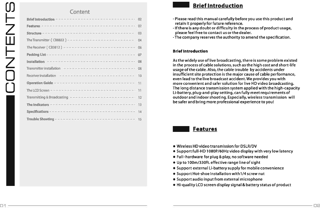 Crystal Video Technology CB882220140601 HD Wireless Video Transmitter User Manual 8822 3812 2014 07