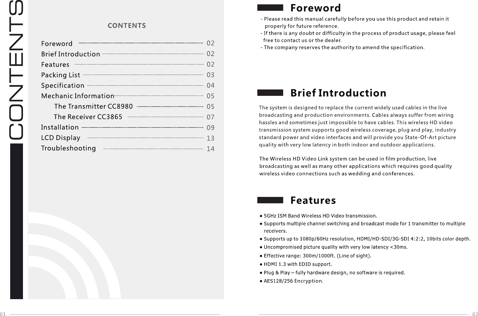 Crystal Video Technology CC898020150202 HD wireless video transmitter User Manual Part One