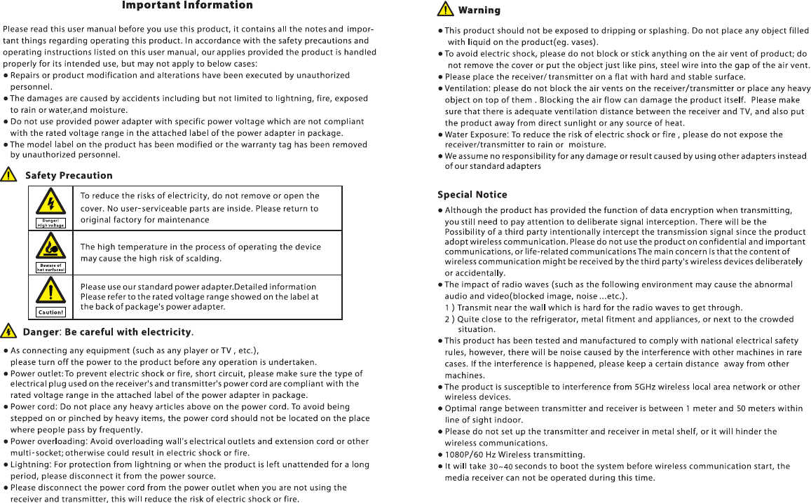 Shenzhen Crystal Video Technology Co.,LTD. HD Wireless Video Transmission System Users Manual Part One