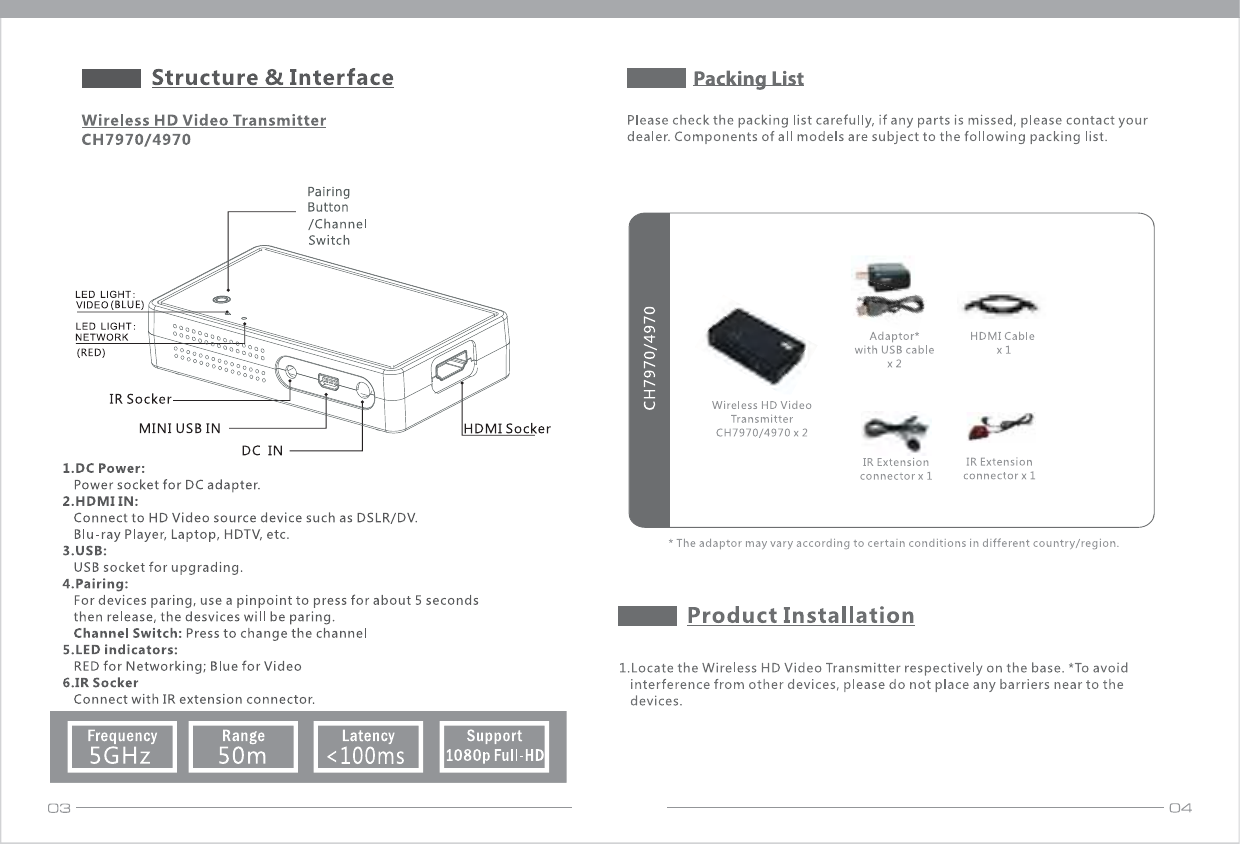 Crystal Video Technology CH797020141101 HD Wireless Video Transmission System User Manual Part One
