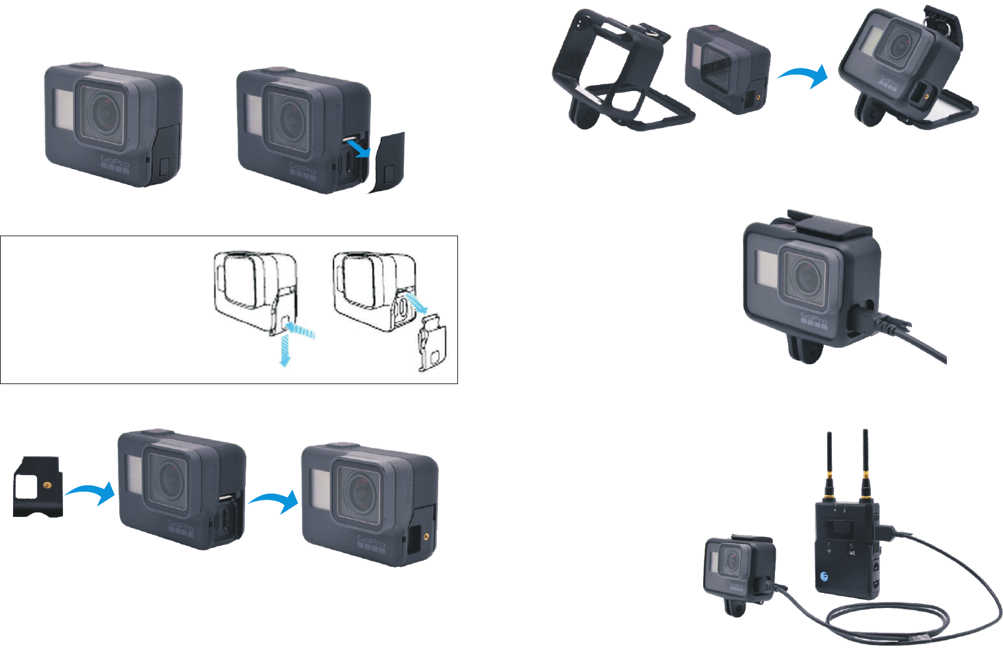 1. Remove the side cover of the Gopro Hero 5,then install the side cover with screw