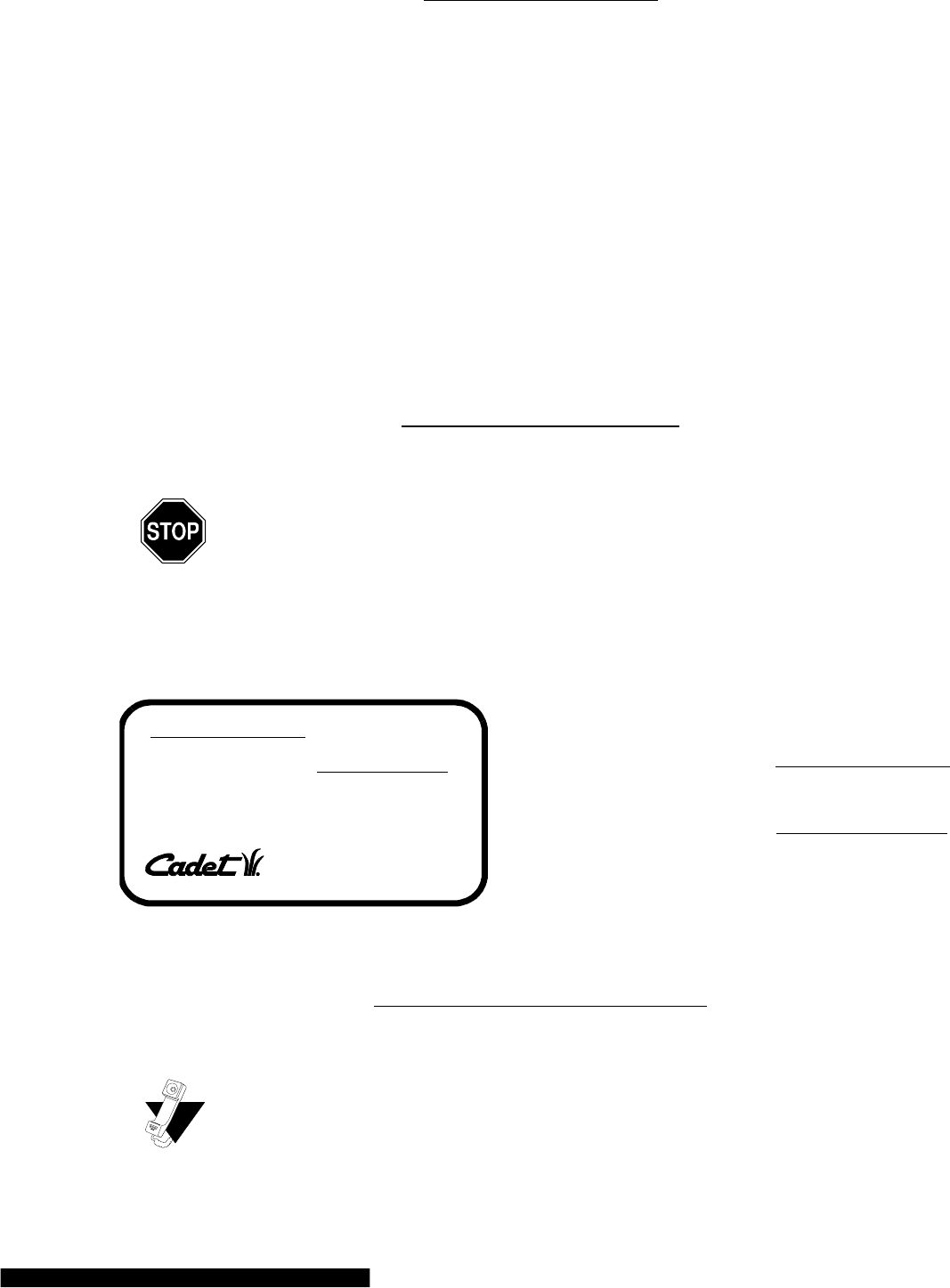 Proper maintenance of your Cadet equipment is the owner’s responsibility. Follow the instructions in your