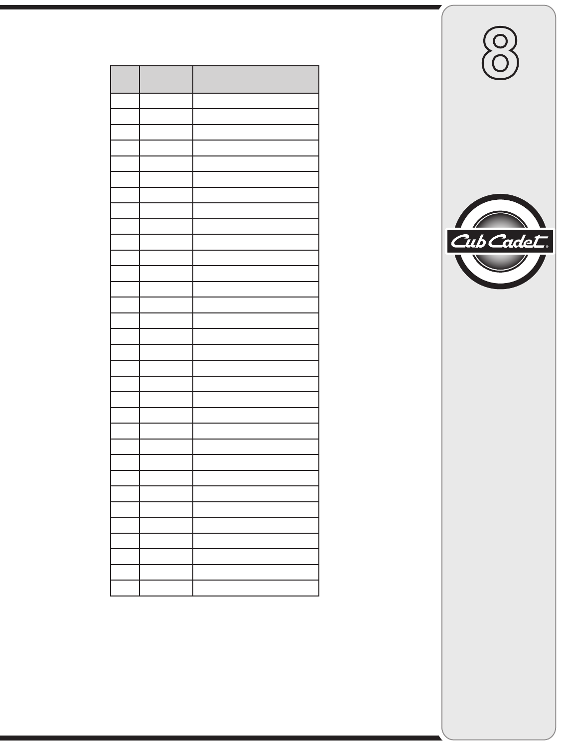 Check your Yellow Pages, or contact Cub Cadet LLC at P.O. Box 361131,