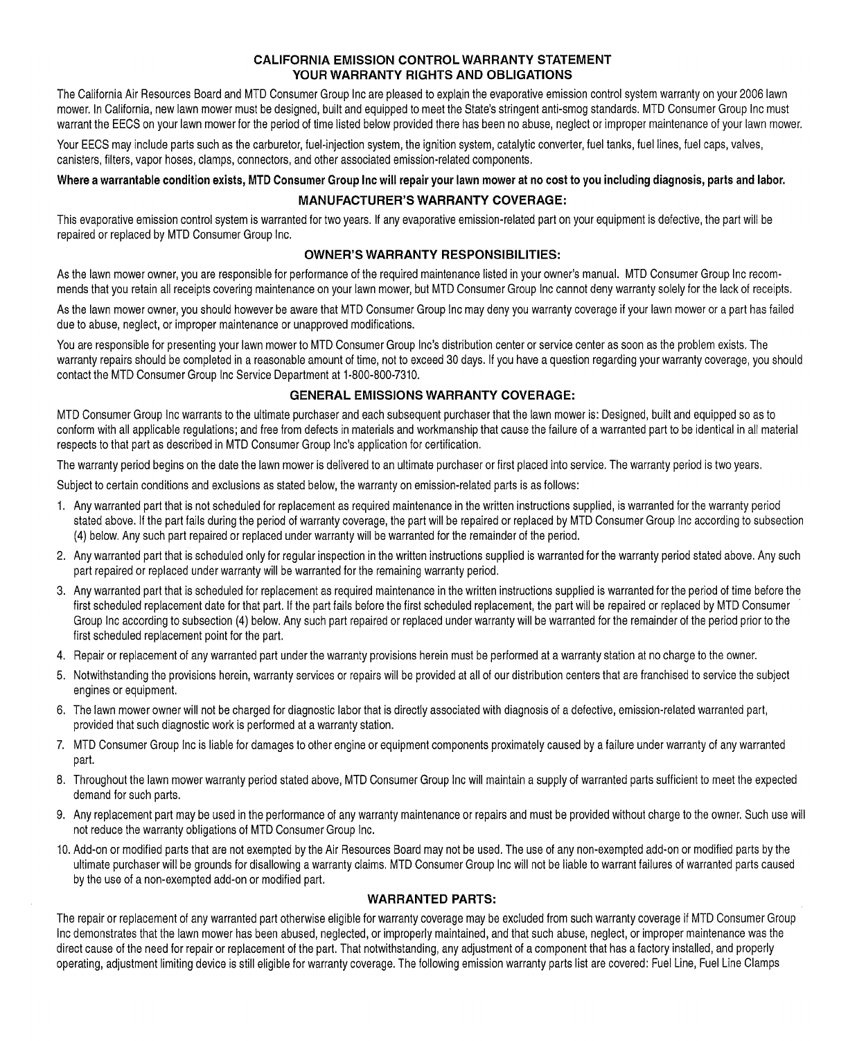 call 1-800-361-5770 or log on to our website at www.cubcadet.info.
