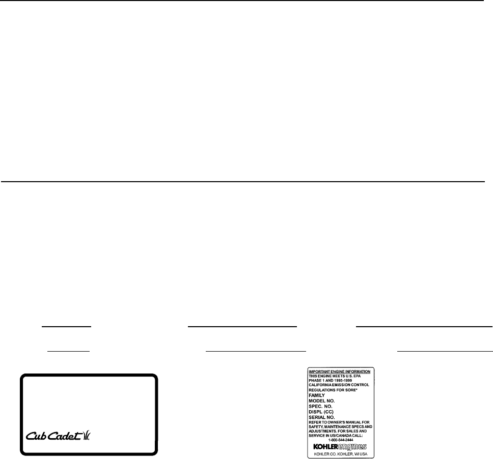 similar laws. Federal laws apply on federal lands. A spark arrester for the muffler is available through your nearest engine authorized