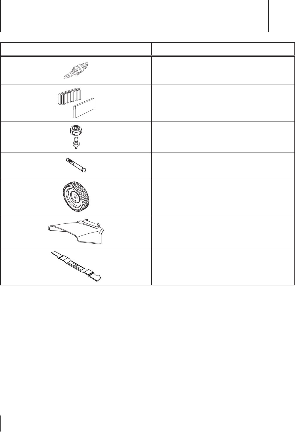 items such as: belts, blades, blade adapters, grass bags, engine oil, air