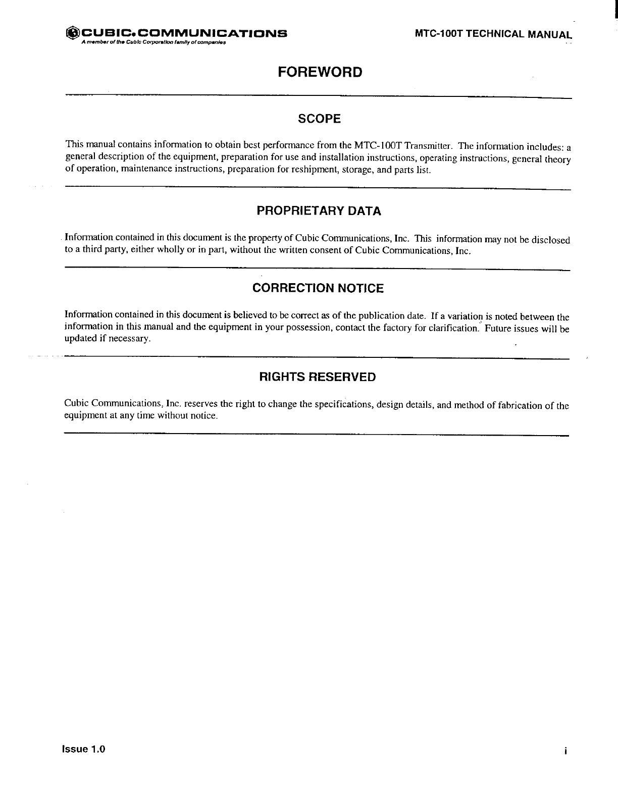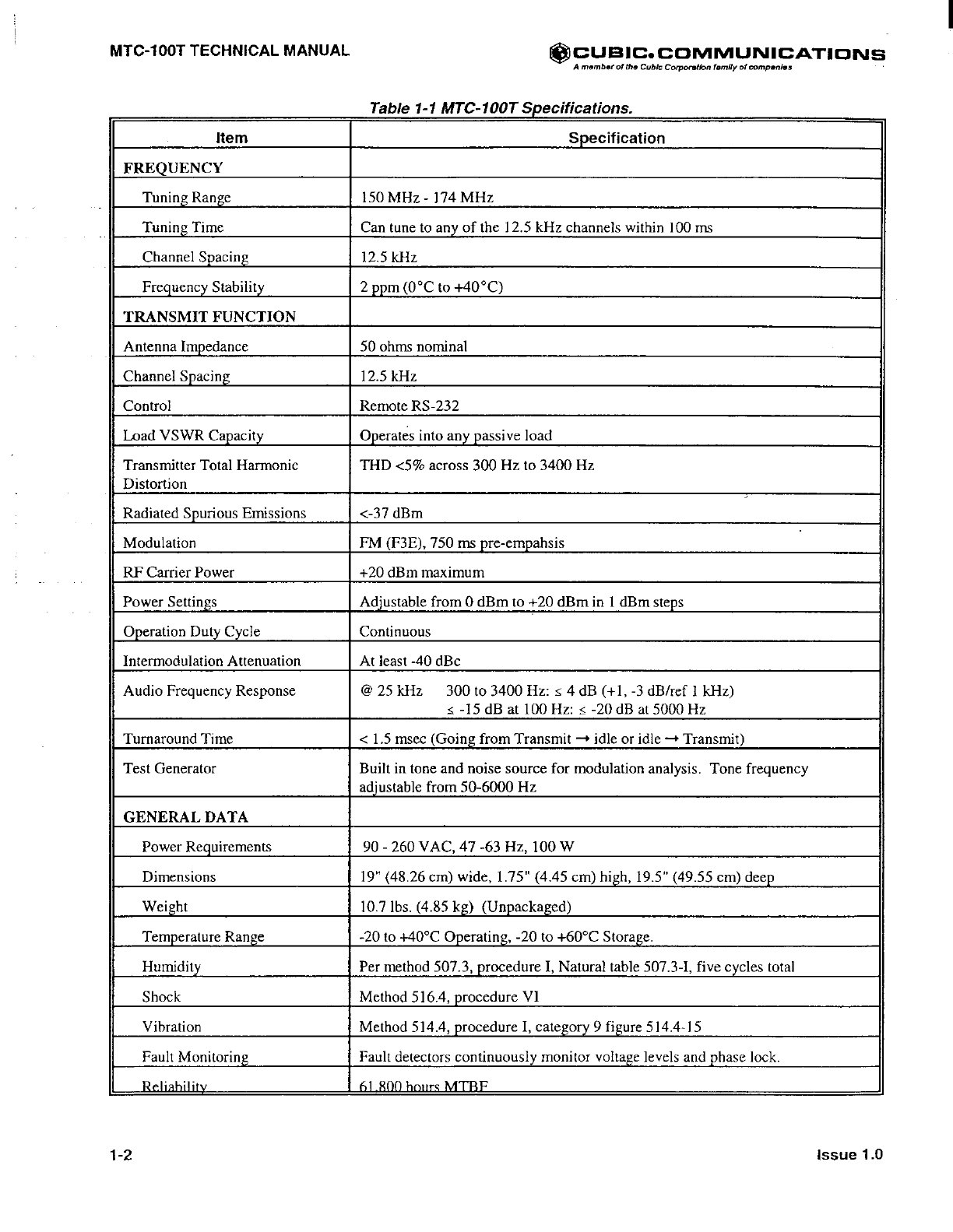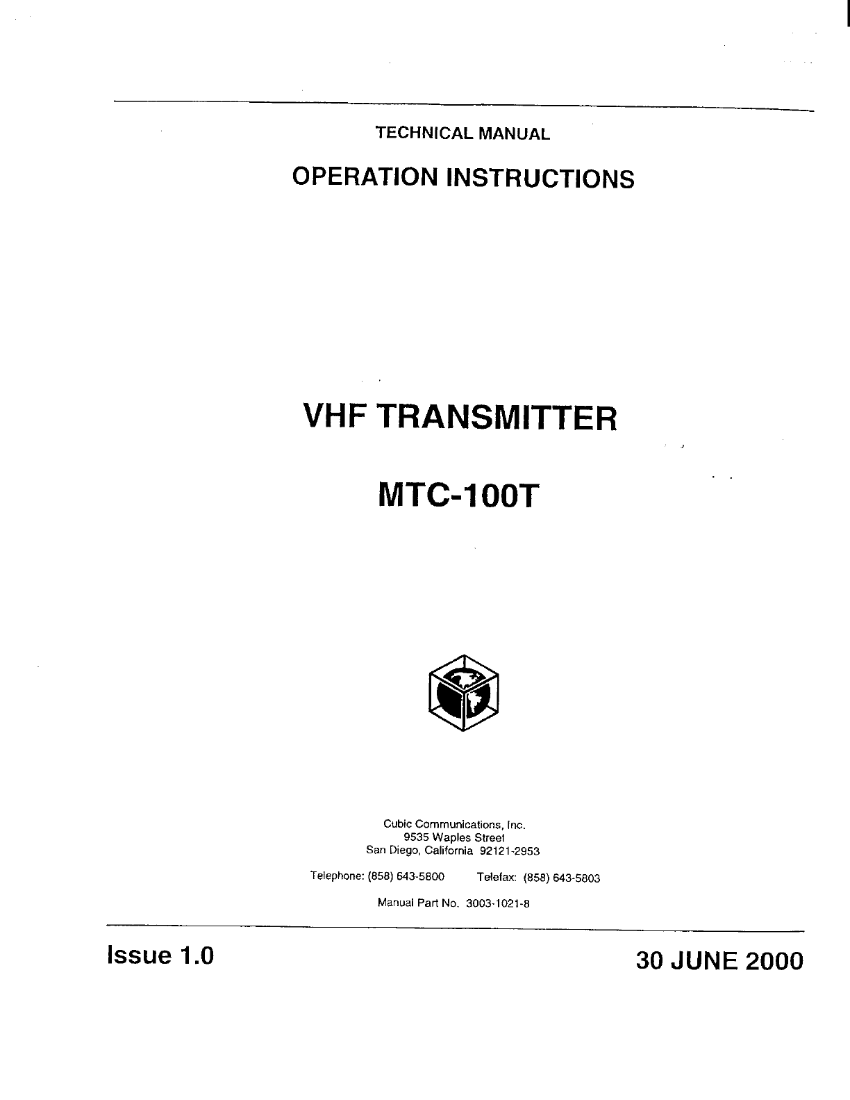 Cubic Communications MTC-100TMCPA MTC-100T MCPA User Manual manual