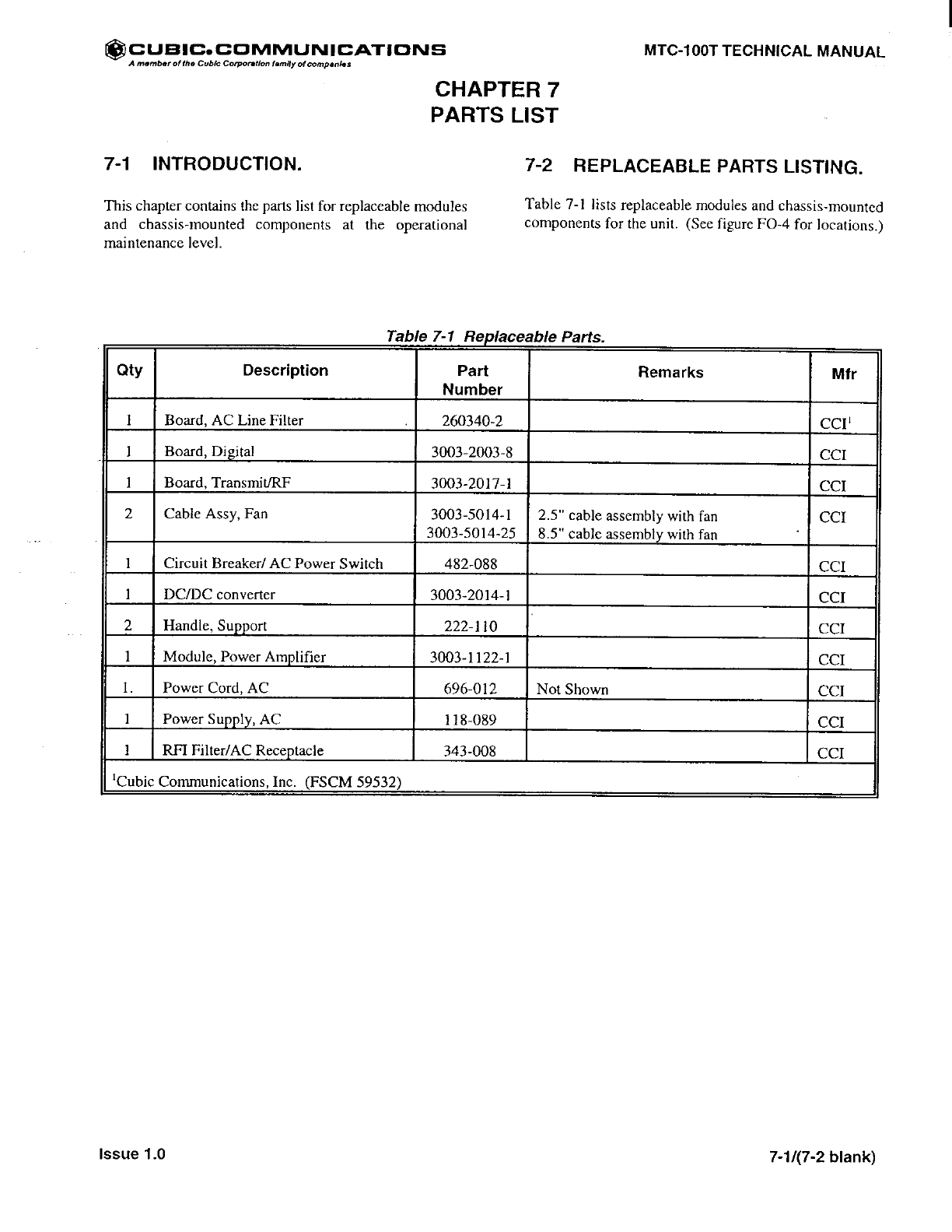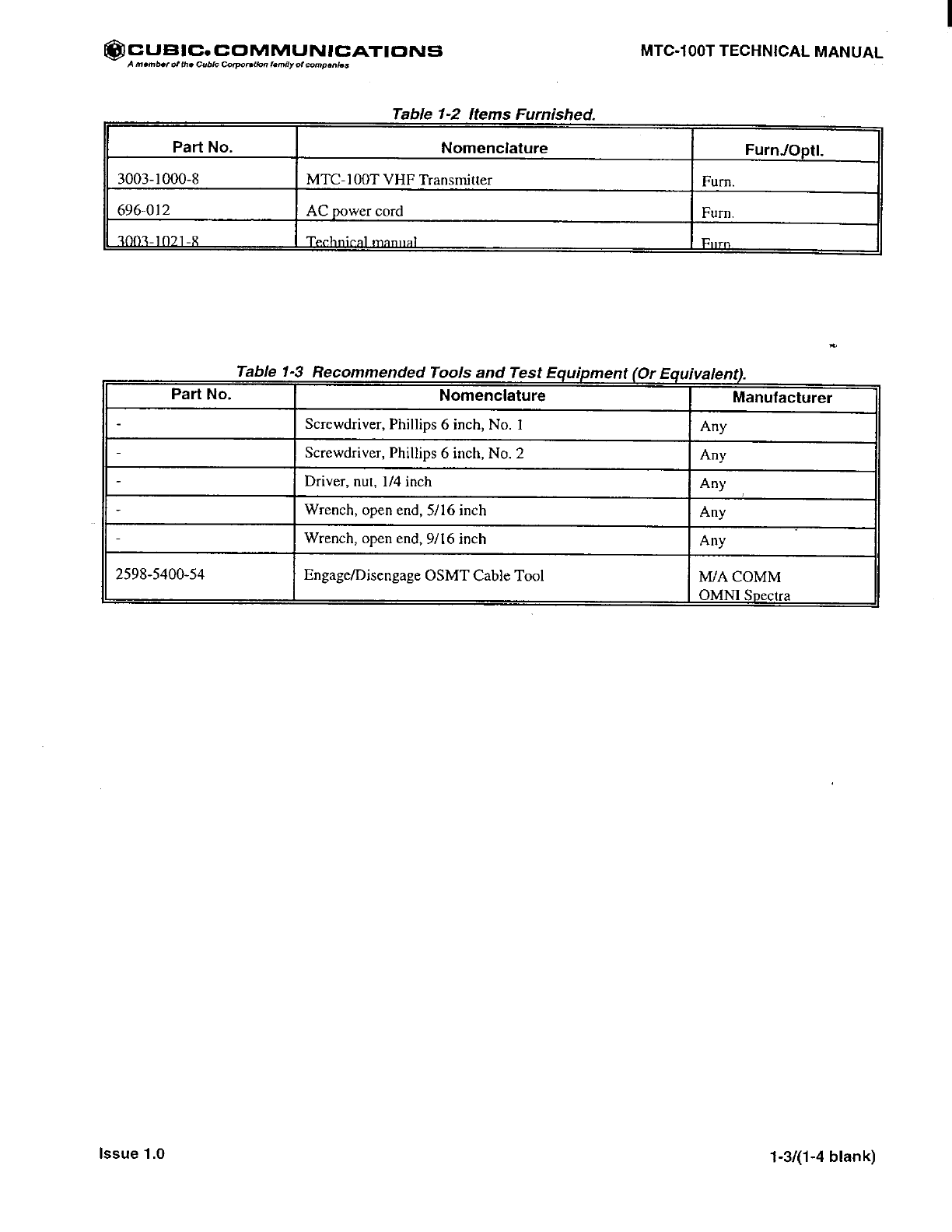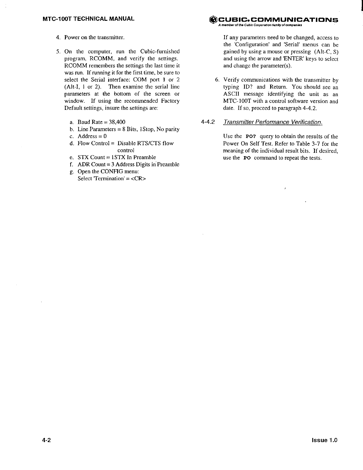 Cubic Communications MTC-100TMCPA MTC-100T MCPA User Manual manual