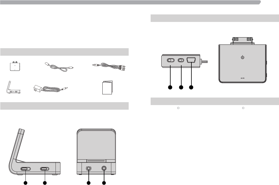 - Transmitter - Mini-USB to USB Charging Cable - Audio/Video Cable