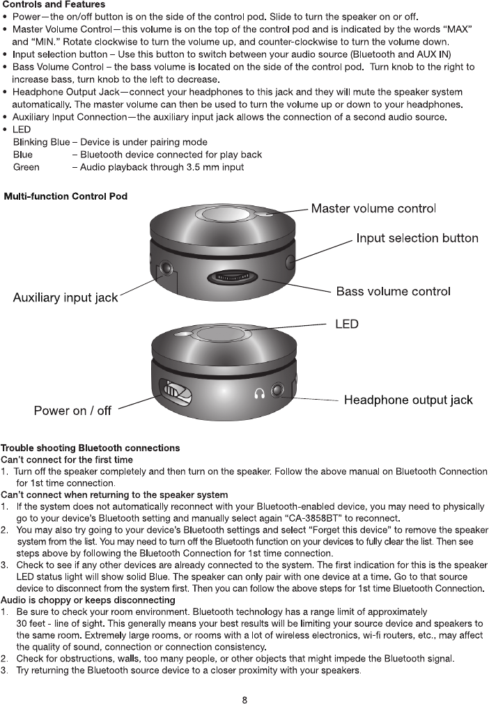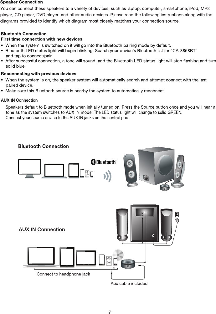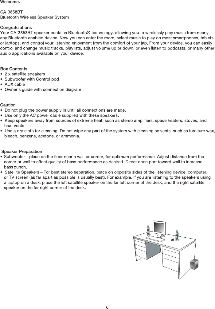 Cyber Acoustics CA-3858 A Bluetooth 2.1 Speaker System User Manual CA 3858bt manu ol